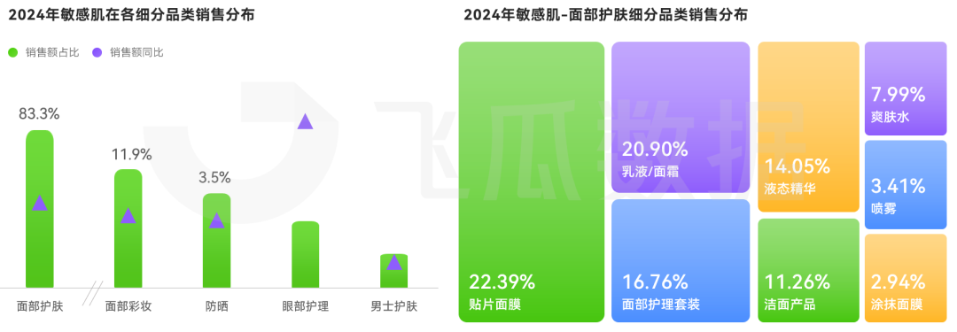 在2024年敏感肌市場中,面部護膚以超 83% 的份額穩居主導地位,成為消費者核心需求領域。