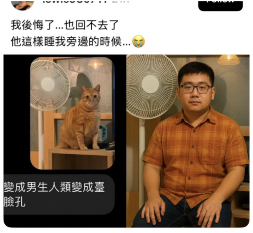 這樣你可以看到軟萌橘貓搖身一變,成了其貌不揚的中年男子。