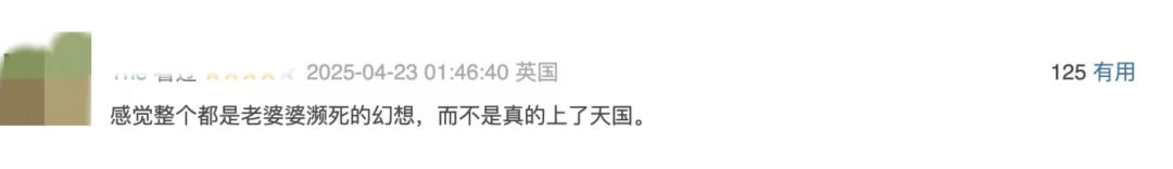 正如豆瓣一條短評所言,這一切“不像天堂,而像老婆婆瀕死的幻想。”