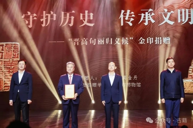 5月18日,在吉林省委宣傳部的悉心指導下,由吉林省文化和旅遊廳(吉林省文物局)主辦,吉林省博物館協會協辦,長影舊址博物館承辦的“2025年國際博物館日吉林主會場活動啓動儀式”在此拉開帷幕。啓動儀式上,最為激動人心且引人矚目的環節,無疑是流散海外、歷經一千七百餘年風雨的西晉時期“晉高句驪歸義侯”馬鈕金印的無償捐贈交接儀式。這枚不久前在香港以逾千萬港元創下古璽印拍賣世界紀錄的國寶級文物,由吉林籍著名企業家金明南、高金丹夫婦無償捐贈給集安市博物館,標誌着這方承載着厚重歷史信息的珍貴金印,在歷經漫長的漂泊後,終於踏上了迴歸故土的莊嚴旅程。