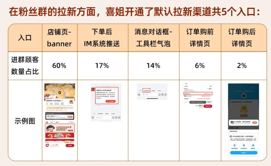 以喜姐炸串為例,該品牌在餓了麼平台構建了完整的會員引流體系,在店鋪首頁banner、下單完成頁、訂單詳情頁等五個關鍵觸點設置入羣入口。在社羣運營時,品牌會配備專人進行管理,避免完全依賴機器人回覆的冰冷感,還通過設置入羣禮包、發佈趣味遊玩指南等方式柔化營銷信息,同時定期舉辦會員日活動提升復購率,確保重大營銷活動能夠精準觸達核心用户羣體。