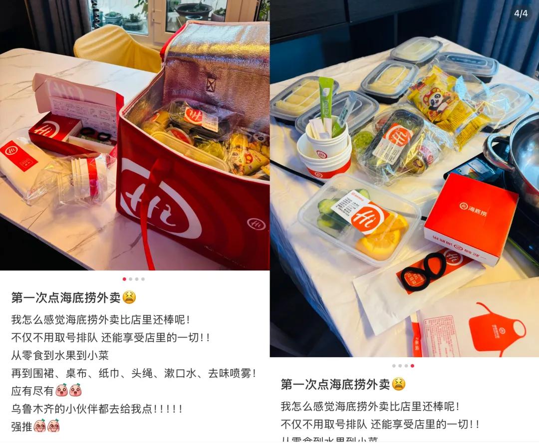 細節處的用心往往也很能打動消費者。在包裝封口處設置"出餐檢查清單”,不僅能減少打包店員漏放配件的失誤,還展示了品牌的嚴謹態度。“外賣高度線"的設計則讓用户直觀感受到份量保障。還有更聰明的做法,是附贈手寫感謝卡或當季新品試吃包,這種超出預期的"小驚喜"能讓用户主動拍照分享。比如海底撈在火鍋外賣中還會附贈圍裙、桌布、漱口水、去味噴霧等等,解決用餐的清潔問題,這些貼心設計就會讓用户自發傳播。
