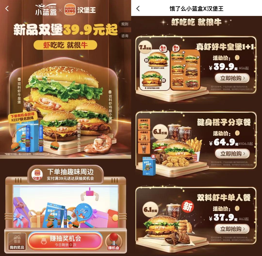 開屏廣告、首頁彈窗、banner廣告等這些高曝光入口,正強勢觸達用户;特別是下拉頁面後出現的"二樓"專屬活動區,已成為連鎖品牌新品推廣和週年慶營銷的主戰場。比如近期打開餓了麼在首頁下拉後就會看到漢堡王出現在“大牌驚喜”專區,推廣“新品雙堡39.9元起”活動,用户下單後還可以在活動頁抽取周邊小禮品。