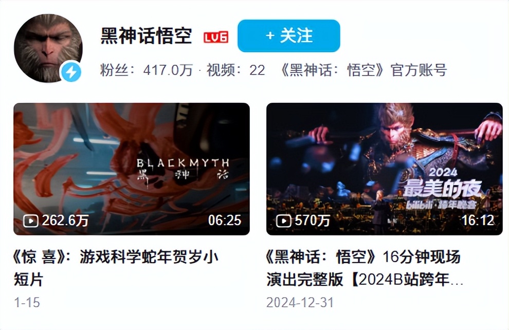 根據官方數據,截至2024年11 月,《黑神話:悟空》在B站官方頻道的播放量超過2億次,彈幕和評論數量突破百萬。