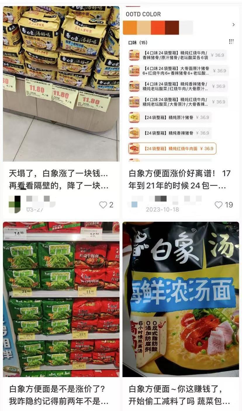 據“DoNews”報道,部分經銷商及終端商對白象頗有“怨言”。一方面,白象方便麪動銷不佳,只能低價向市場甩貨;另一方面,相較其他方便麪品牌經銷商,白象經銷商管理較為混亂,聯繫不到業務員、不幫商家調貨等。一河北超市老闆告訴“DoNews”,一些同行因為對白象服務不滿,已陸續下架白象相關商品。