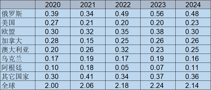 同年俄羅斯的天然氣產量只有6184億立方米,比美國少了3000多億立方米;中國的天然氣產量是2218億立方米,比美國少了7000多億立方米。