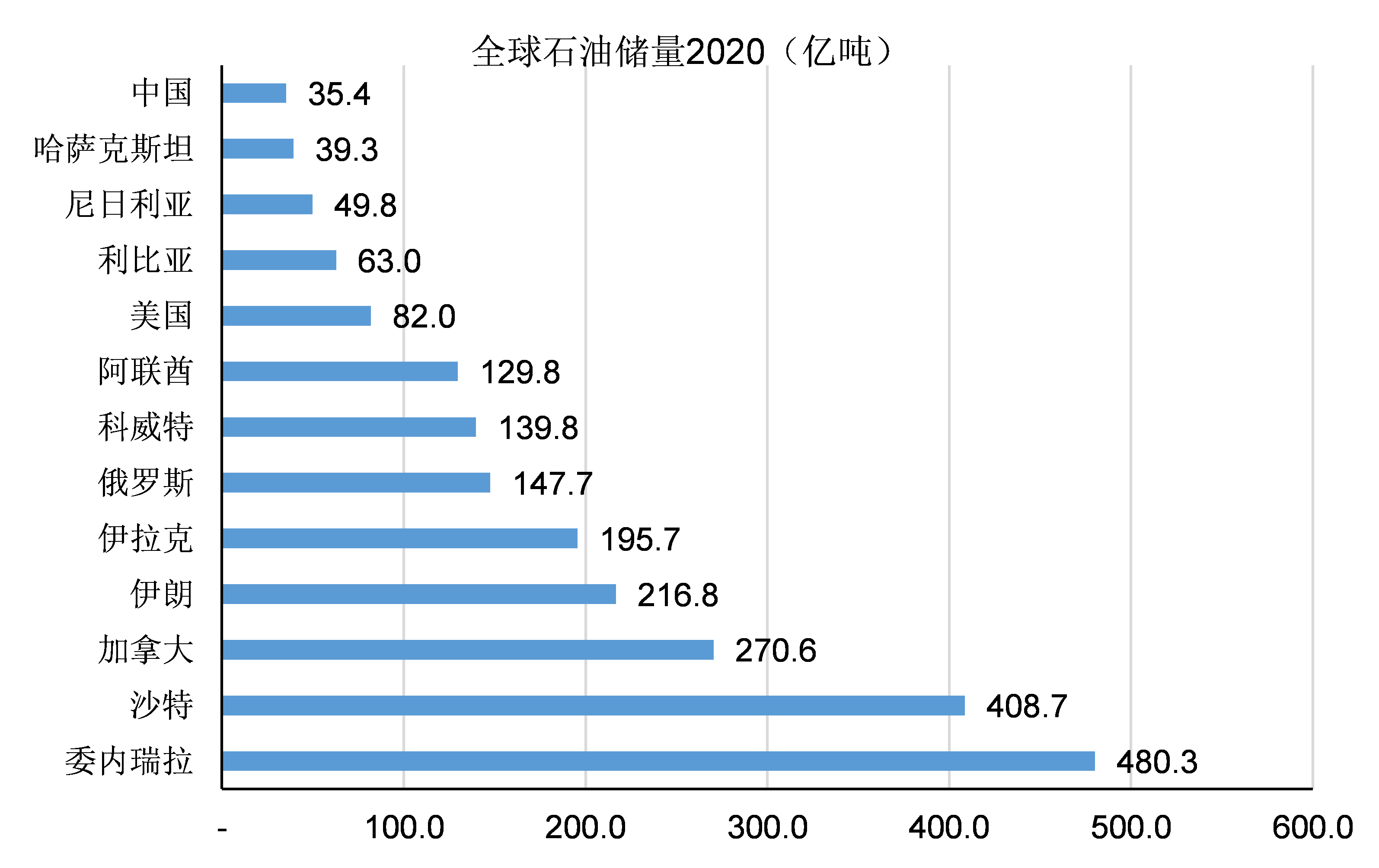 美國是石油大國,2020年美國的石油儲量高達82億噸,在全球排名第九。