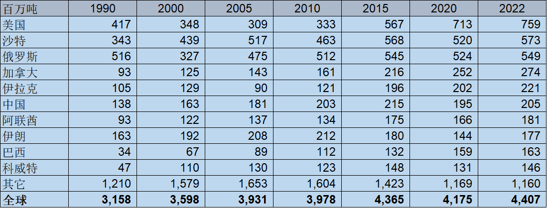 美國是全球石油產量最大的國家,2022年美國的石油產量高達7.59億噸,石油產量大幅領先世界其他國家。