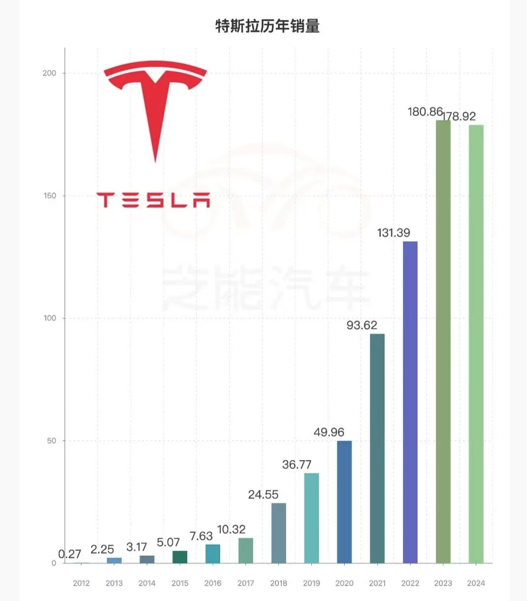 2024年特斯拉在全球的汽車銷量接近180萬輛,是除了中國以外全球最大的新能源汽車製造企業。