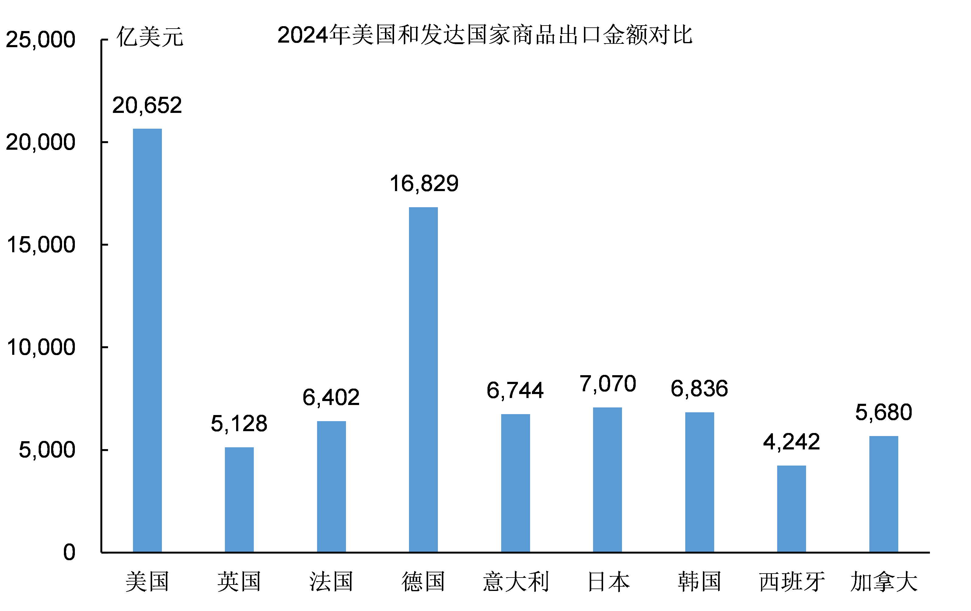 2024年美國的商品出口金額是20652億美元,規模遠超其他發達國家。