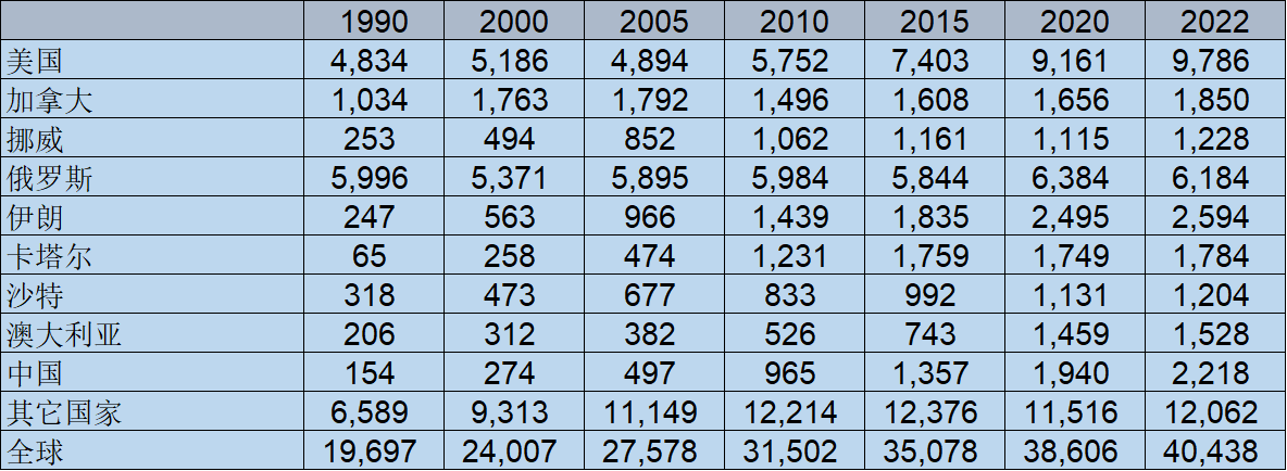 2022年,美國的天然氣產量高達9786億立方米,全球排名第一。