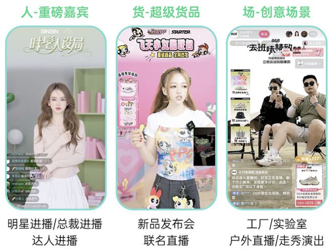 最後是“場”的場景打造,如工廠探秘、户外實景或時裝走秀等創意場景,為消費者提供沉浸式購物體驗,增強互動感和購買衝動,從而實現銷量爆發。
