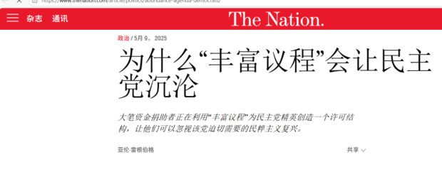 在2024大選失敗之後,民主黨內部陷入了嚴重的分裂狀態,所以對於特朗普的種種政策,他們都沒有能力去抵擋。但是隨着特朗普的各種政策落地困難,民主黨人似乎又意識到,2026和2028自己説不定可以躺贏,在這樣的樂觀主義情緒支配之下,他們自然提出了一些議程。