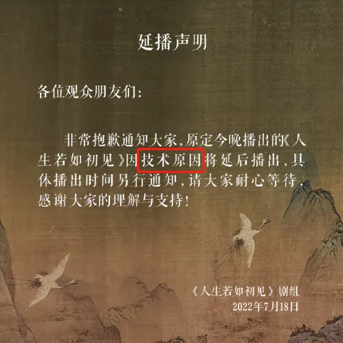 2022年7月18日,《人生若如初見》的首次播出堪稱一場戲劇性的災難。