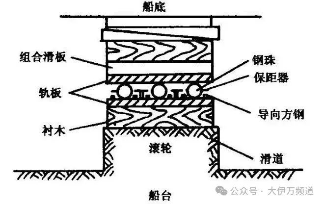 除了漂浮式下水方法,還有重力式下水法,重力式下水法就是先將船舶移動到滑道上,然後利用重力或者牽引的方式讓船體從滑道上滑到水裏去,滑到水裏去的方式包括縱向滑道和橫向滑道下水。簡而言之,就是縱向滑道是前後滑動,橫向滑道則等於是從側面把船給“扔”到水裏去。