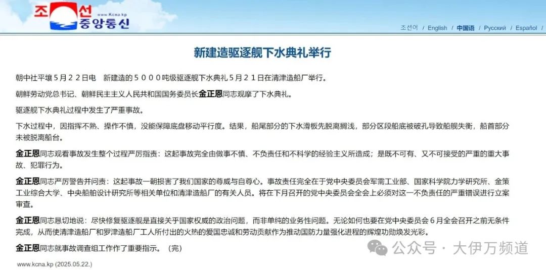 不過,話不多説,朝鮮的“崔賢”號驅逐艦二號艦,按照朝中社這雲裏霧裏的描述,下水過程中到底出了怎樣的事故?事故的後果可能是怎樣的?