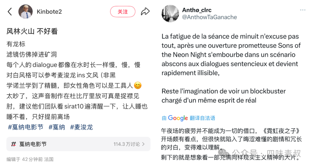 還有人説該片在戛納電影節上的口碑崩塌(有些影評人認為其“僅適宜置於當代藝術館中展示”),印證了“野心與才華不匹配”的尷尬。