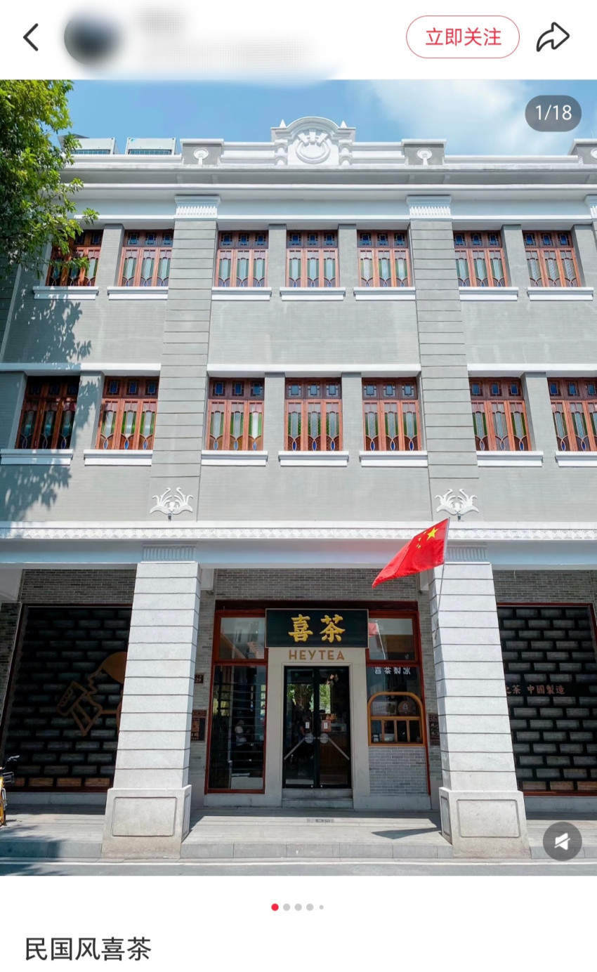 比如喜茶。其廣州的永慶坊店在裝修上融合了廣州上世紀西關騎樓文化,滿洲窗搭配青磚牆面,滿滿的民國風情,被網友稱為“廣州最美喜茶店”。不少網友前往打卡,小紅書上,網友們針對這家門店的打卡筆記就近2000篇。