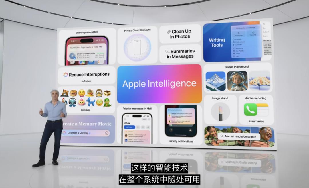 2024 年 6 月,蘋果在 WWDC 上宣佈了 Apple Intelligence,並且宣佈了與 OpenAI 之間的合作,並將 ChatGPT 集成到其系統生態中——但是,關於在中國市場如何進行 AI 落地,蘋果並沒有給出任何對外表態。