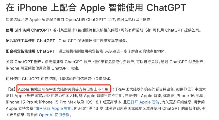 然而,後來的事實證明,這個所謂的「iPhone 的 ChatGPT 時刻」雖然增加了蘋果產品的 AI 屬性,但卻與中國市場並沒有什麼關聯——畢竟,ChatGPT 在中國並不可用。
