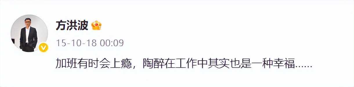 訪談中方洪波坦言“我從來不加班,沒有説 6 點之後還上班,這絕對不可能,週末加班也從來沒有,我過去 20 年都是這樣。”