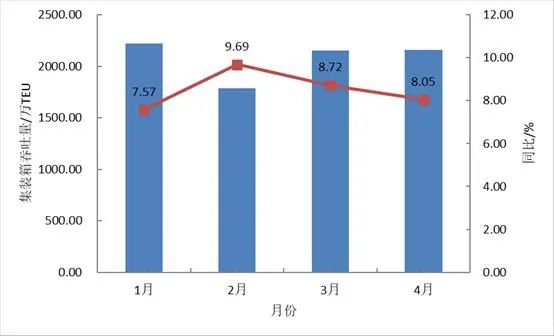 2025年1-4月,我國國民經濟頂住壓力穩定增長,延續向新向好發展態勢,貨物進出口同比小幅增長。4月,除煤炭、糧食吞吐量同比下降外,主要港口企業原油、鐵礦石、集裝箱吞吐量同比實現不同程度增長。