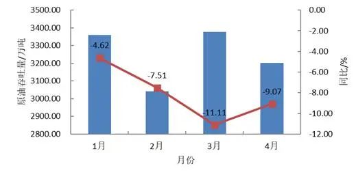 4月原油生產保持增長,原油加工有所放緩,原油進口平穩增長。根據國家統計局的數據,4月規上工業原油產量1772萬噸,同比增長1.5%;1-4月規上工業原油產量7181萬噸,同比增長1.2%;4月,規上工業加工原油5803萬噸,同比下降1.4%;1-4月規上工業原油加工量24027萬噸,同比增長0.8%。根據海關總署統計數據,4月原油進口量為4806.1萬噸,同比增長7.47%;1-4月原油累計進口量為18303.0萬噸,同比增長0.5%。