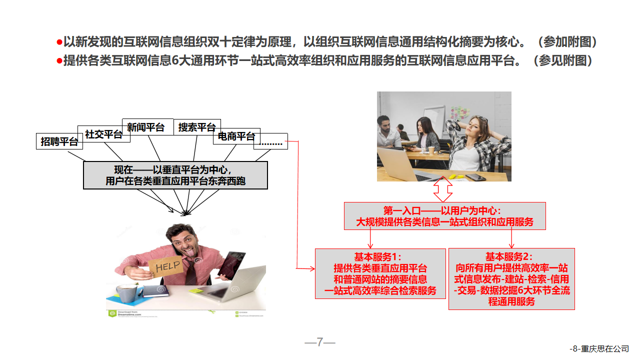 只要用户有需求,凡發佈信息者,均可在通用平台一鍵擁有專屬於個人的互聯網應用門户(既專屬於個人的通用平台子網站)。在自己的子網站上,任意用户均不僅可以發佈各類信息,並且可以隨時幹想在互聯網上乾的任意買賣,可建立起自己的互聯網信用指數。這將催生互聯網信息應用進入一個以用户為中心、而不是以平台為中心的互聯網應用嶄新時代!