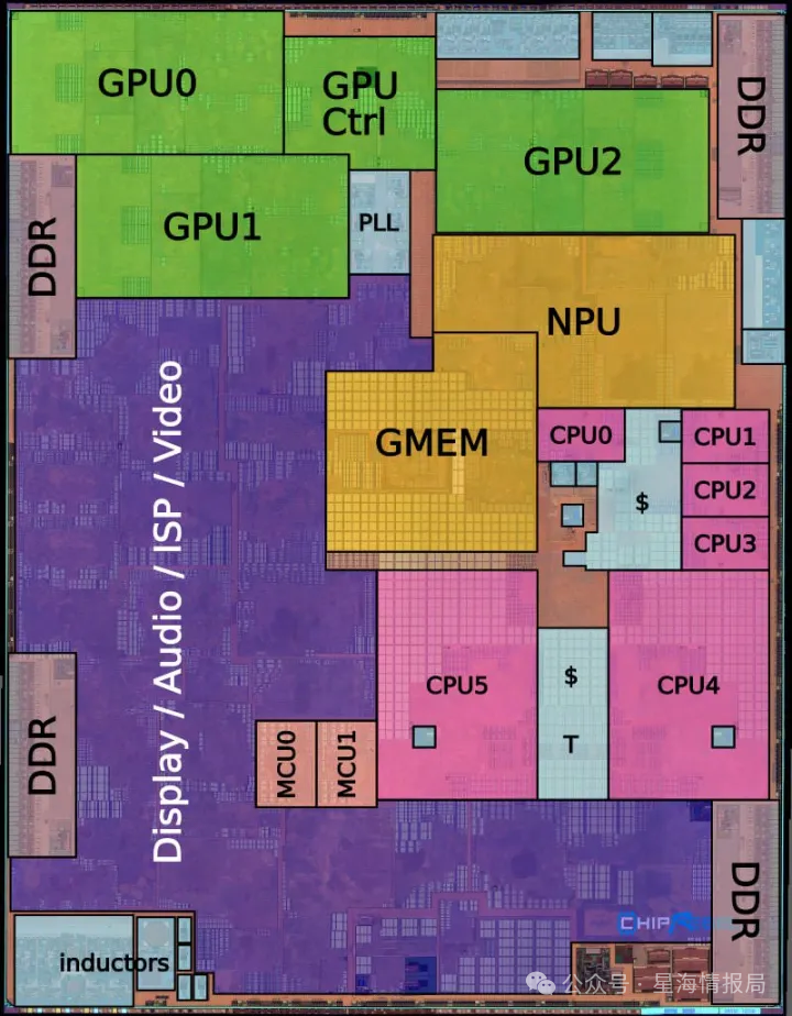 我們平時説的手機芯片,一般是指最核心的SoC芯片,它就像手機的大腦,簡單來説SoC就是把一堆不同功能的小模塊,比如大家常聽説的CPU(數據處理)、GPU(圖形處理)、ISP(圖像處理)、NPU(負責AI)這些模塊集成在一塊芯片上。