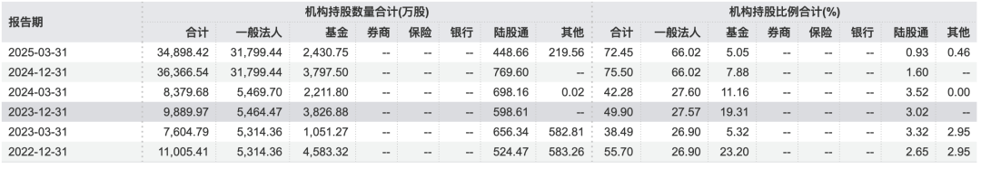 華熙生物的機構投資者正在出逃,其中基金的持股比例從2022年底23%下降到2024年的7.88%,最新的一季報中,已經降至5.05%。