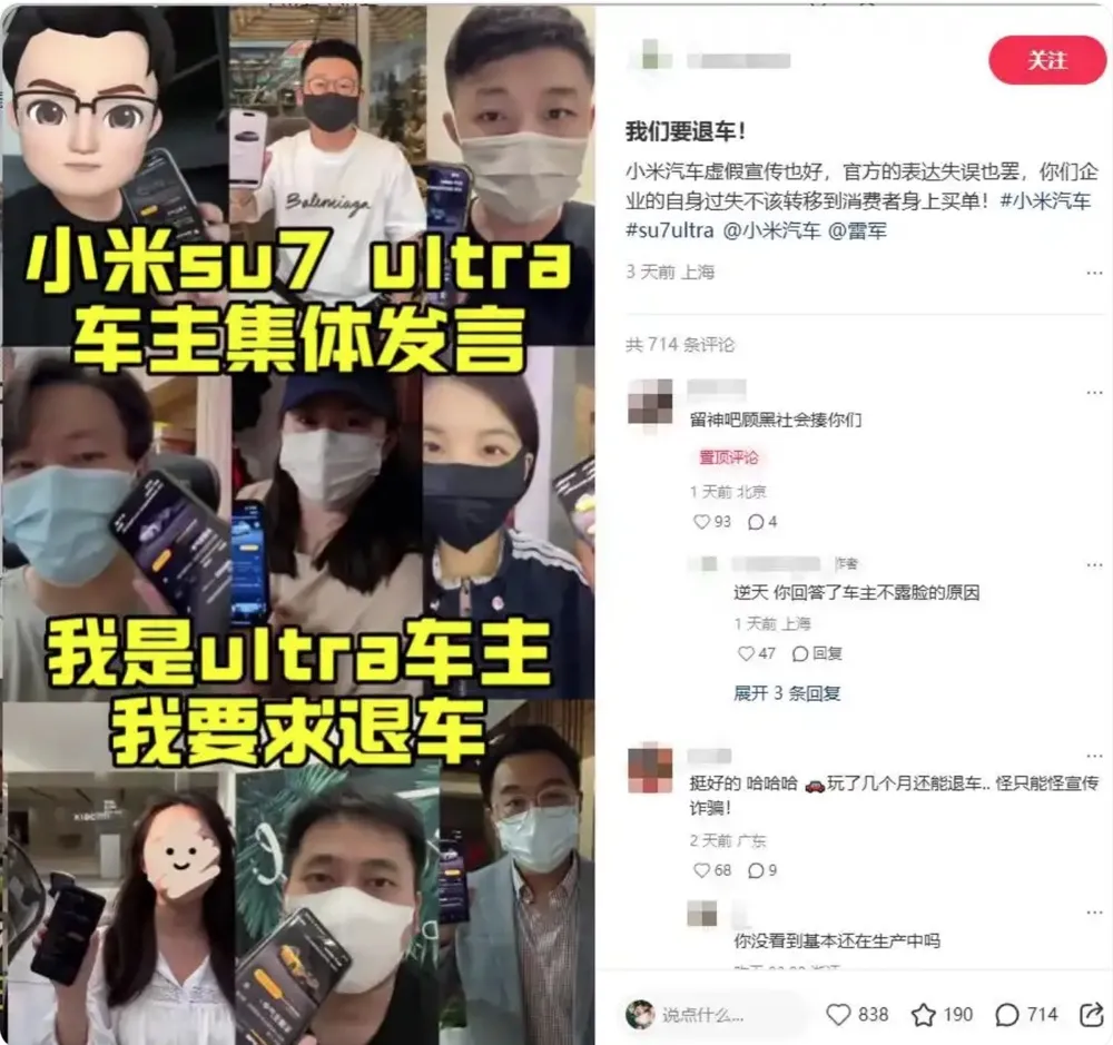 緊接着,SU7 Ultra的“碳纖維雙風道前艙蓋”被指實際功能與宣傳不符,車主實測反饋讓這一設計從“工業亮點”淪為輿論焦點。