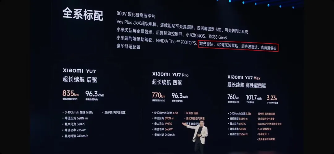 事實上,雷軍已經在智能駕駛方面做出了改變,比如小米YU7全系標配一個探測距離200米的激光雷達。