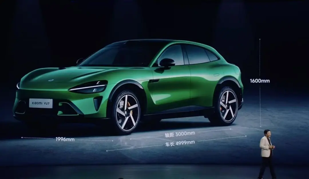 **當晚8點15分,雷軍換上西裝,正式開啓以小米 YU7 為主角的下半場。**在簡單公佈“2025 年小米SU7系列累計交付超25.8萬台,4月單月交付2.8萬台”的成績後,定位豪華高性能SUV的小米YU7(御7)正式亮相。