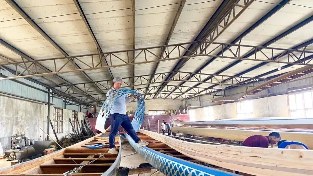 為了適應現代龍舟賽的標準化要求,許桂生不斷改進龍舟製造工藝,將**玻璃鋼薄膜應用到木質龍舟的舟身和舟底。**這一工藝獲得了國家專利,使得龍舟既保持了傳統的木質品味,又減輕了重量、減小了阻力,進一步提升了龍舟的穩定性和競速能力。通過改良船頭弧度、優化船體配重,許桂生製造的龍舟在全國賽事中屢獲佳績。