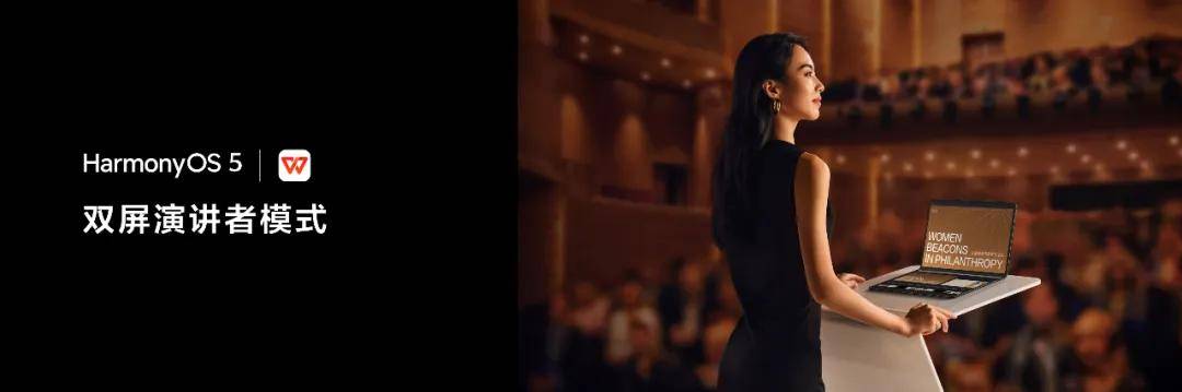 WPS一直是鴻蒙最堅定的擁躉,不斷創新玩法,這一次在鴻蒙電腦上更帶來了新的體驗,充分利用上下兩個屏幕空間開創出雙屏演講模式:上半屏對外投屏顯示,下半屏是詳細的備註內容,讓演講者可以從容投屏,自信演講。
