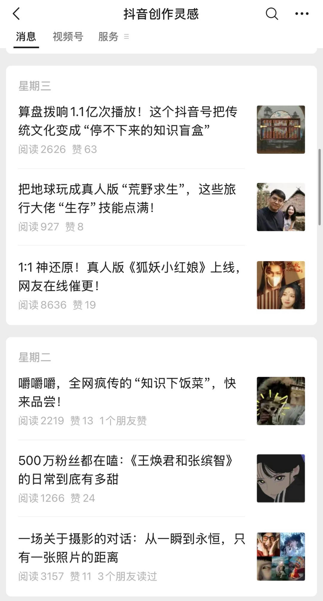 一個明顯的變化是,抖音旗下的創作者官方服務公眾號開始頻繁更新。