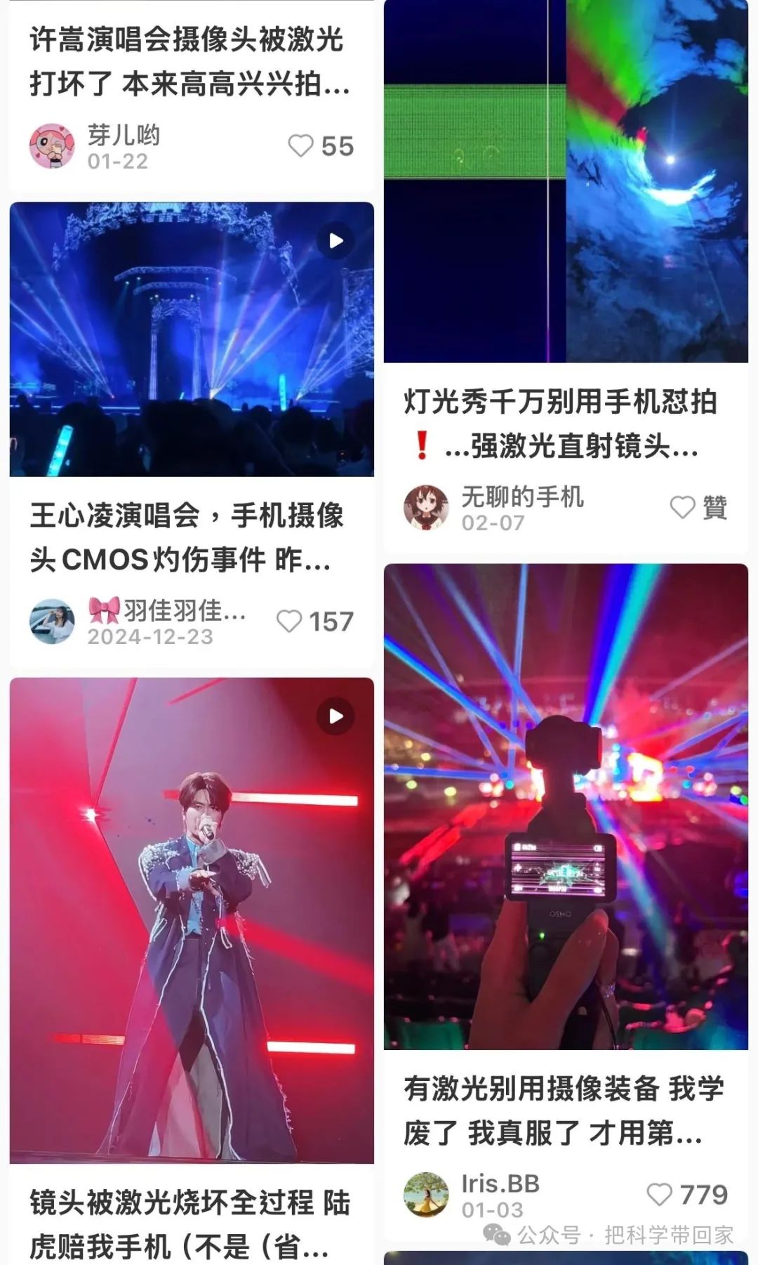 還是有過激光燈傷害眼睛的案例,在這則新聞中,原本用於户外的高強度激光燈在室內被使用,導致數十名觀演者的視力受到一定影響。|newscientist