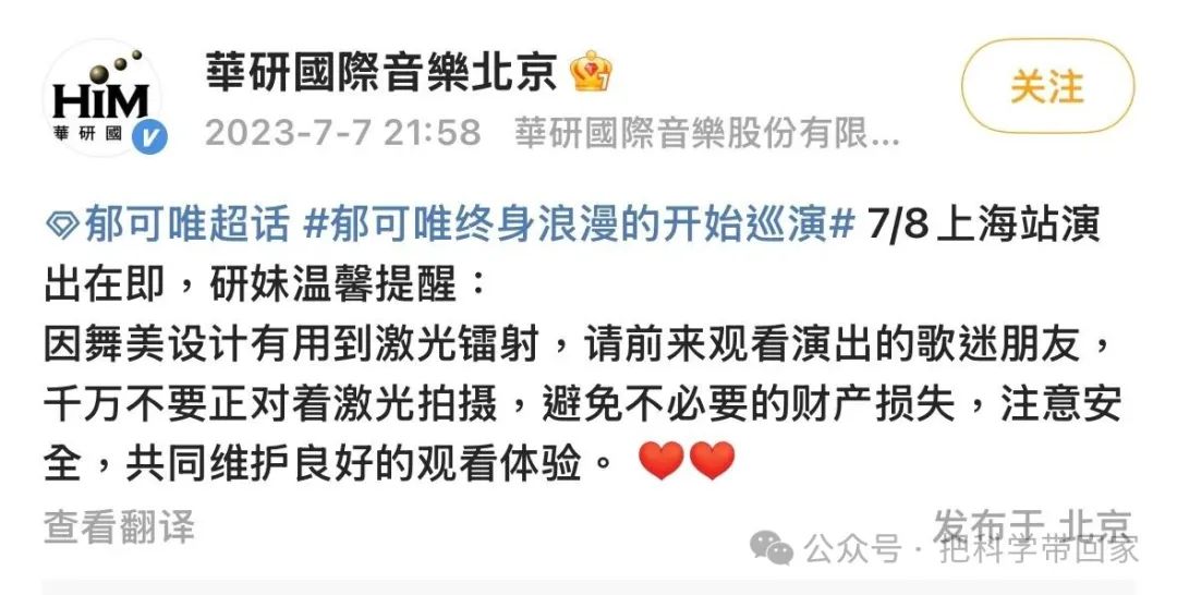 在出發去看演出前,可以提前在網上查一下演出中是否有激光表演,保護好自己的手機/相機。|小x書