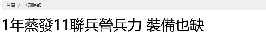 其次,“怕苦”情緒蔓延。台軍訓練鬆散現象頻發,“太陽傘下練打靶,游泳池裏訓泅渡”的敷衍作風已成常態。更嚴峻的是,部隊裝備短缺問題突出,新兵僅能配備槍彈,防毒面具、通信設備等基礎物資嚴重不足。這種“缺人又缺裝備”的惡性循環,進一步削弱青年從軍意願。