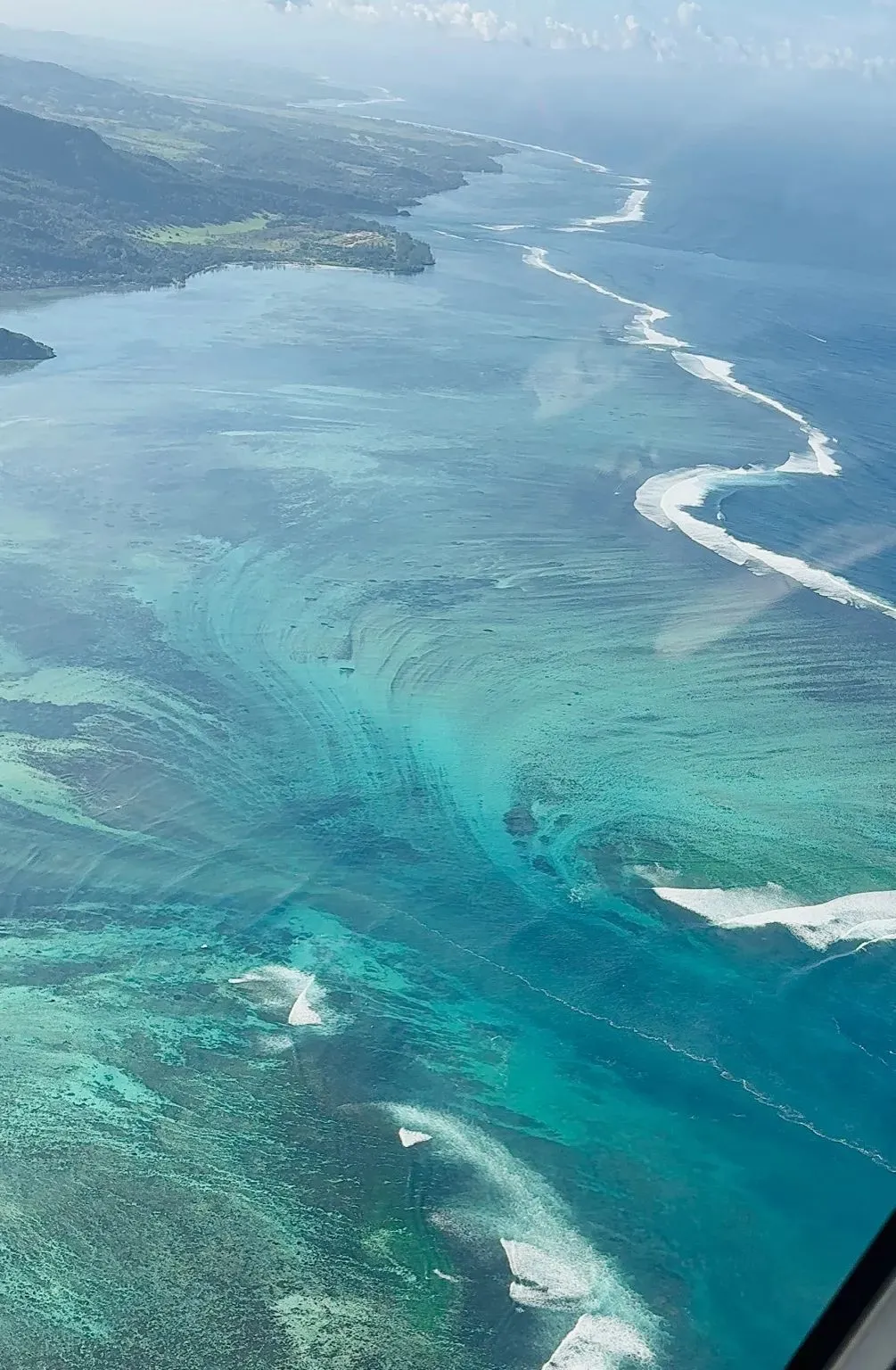 ▲在直升飛機上俯瞰毛里求斯海底瀑布