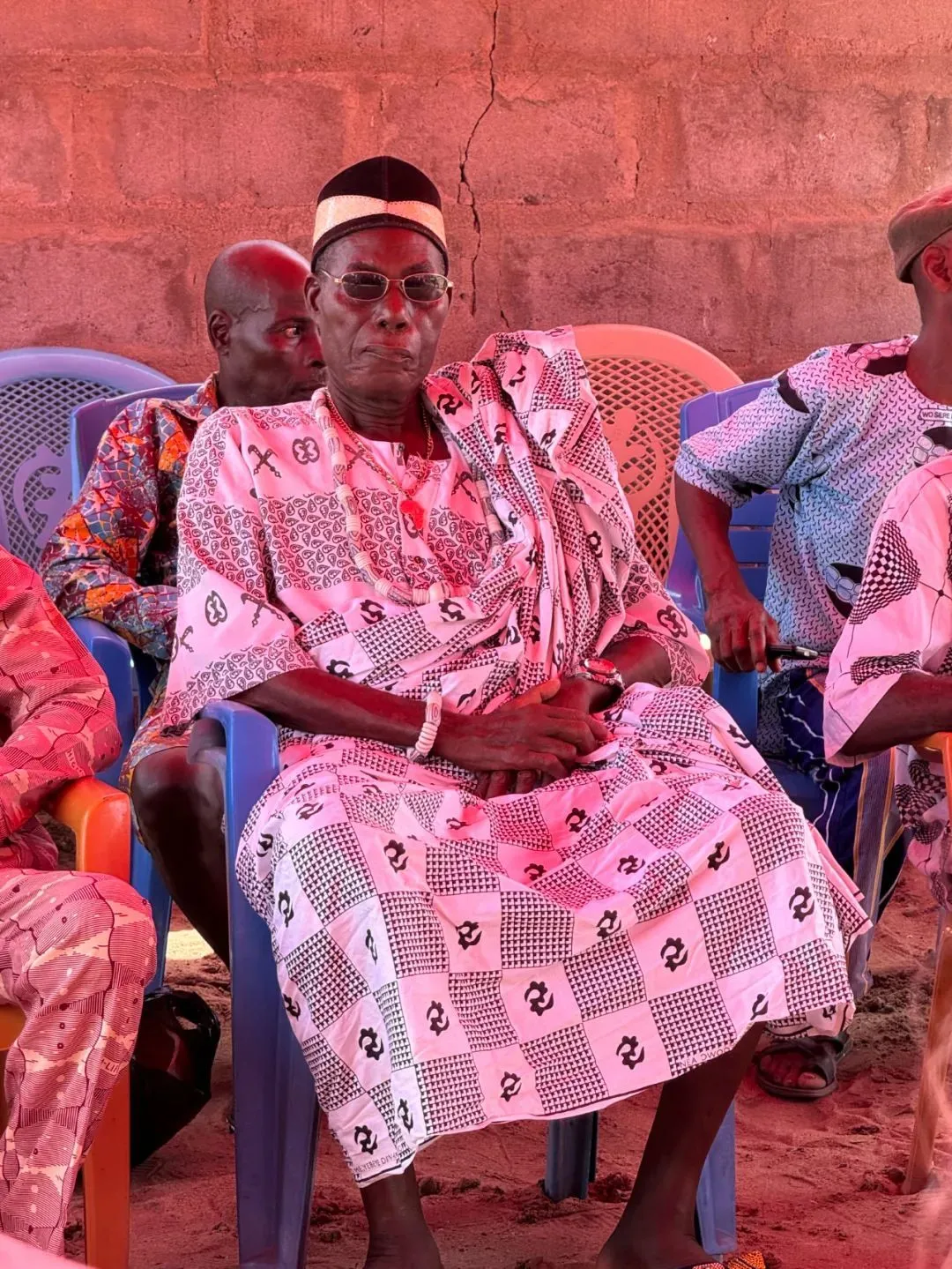 我們到首都不遠的一個鄉村訪問阿坎族部落,酋長帶着一副眼鏡(文明的痕跡),不苟言笑,有着上位者該有的威嚴。雖然此酋長非彼酋長(那種頭頂一塊布富得流油),在他身上依然可以看到權力的巨大能量,一個小小的部落酋長,坐出了不可一世的帝王的範兒,令人歎為觀止!