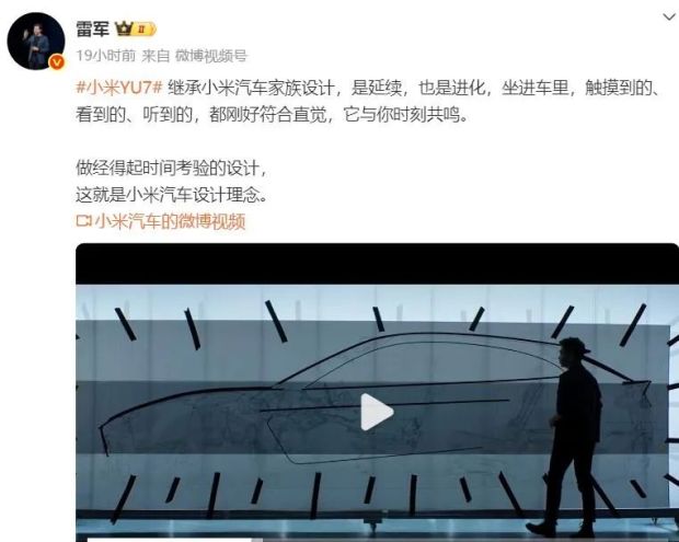 發佈會演講時雷軍也表示,小米YU7遵循了小米汽車的設計理念:迴歸設計的本質,尋找符合直覺的美、符合自然的美、做經得起時間考驗的設計。