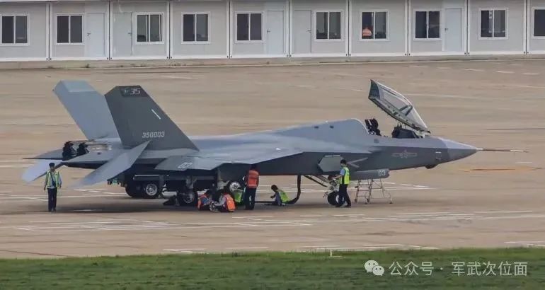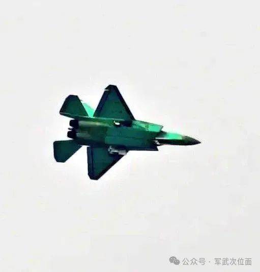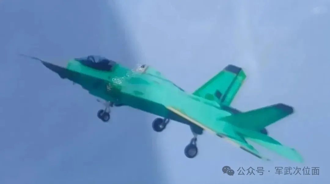 在他發佈的這張照片裏,我們可以比較清楚的看到一架綠色塗裝的殲-35戰鬥機正在飛行。對於關注國產武器裝備發展的網友,這架飛機肯定是不陌生的,至少在2024年左右,這個塗裝的殲-35原型機就已經開始試飛了。