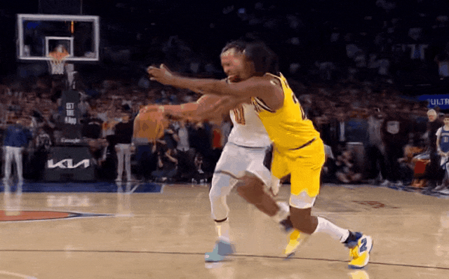 第四節最後,米羅繼續用盡全力:他對位哈利伯頓,封蓋小角度上籃,但落地時受傷,一瘸一拐。之後米羅奮力抓到前場籃板,讓布倫森遠射。大橋也利用了布倫森吸引夾擊找到了上籃。