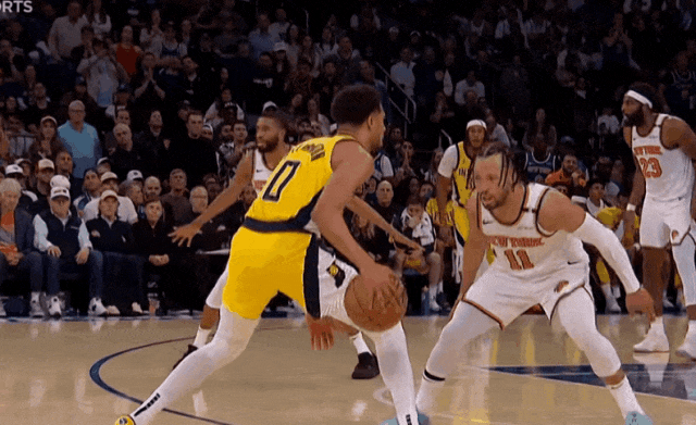 於是尼克斯再上米羅,尼克斯施壓,夾擊哈利伯頓,也確實成功了:哈特反擊上籃。第四節,米羅還讓哈利伯頓運球滑手。