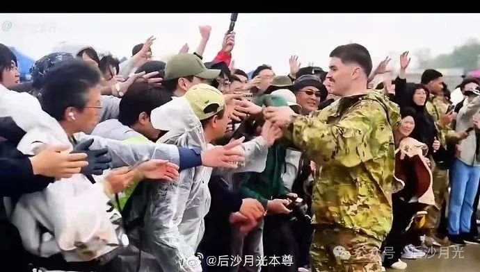 表演結束後,一名美軍軍官走到警戒附近贈送小禮物,韓國民眾就像粉絲見偶像一樣,哭着喊着,爭相握手。