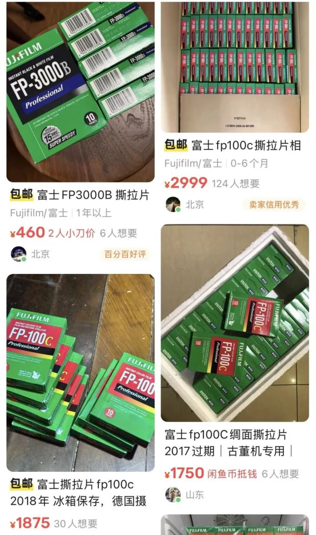 在二手平台,原價60元一盒的撕拉片已經相紙被炒到超過3000一盒,被網友戲稱“紙質茅台”。如果當初囤過相紙,現在也是賺得盆滿缽滿了。
