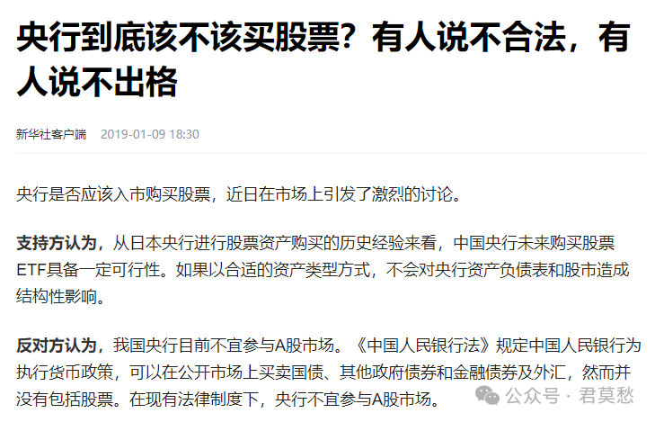 現在的中國也遇到類似日本的情況了,經濟不好,怎麼刺激也沒有用。房子,政府不敢買了,怕是無底洞。怎麼辦?要不學學日本,讓央行印錢去買股票?所以,前段時間就不斷有“央行買股”的各種傳聞和爭論,有人支持,也有人反對,各有理由。