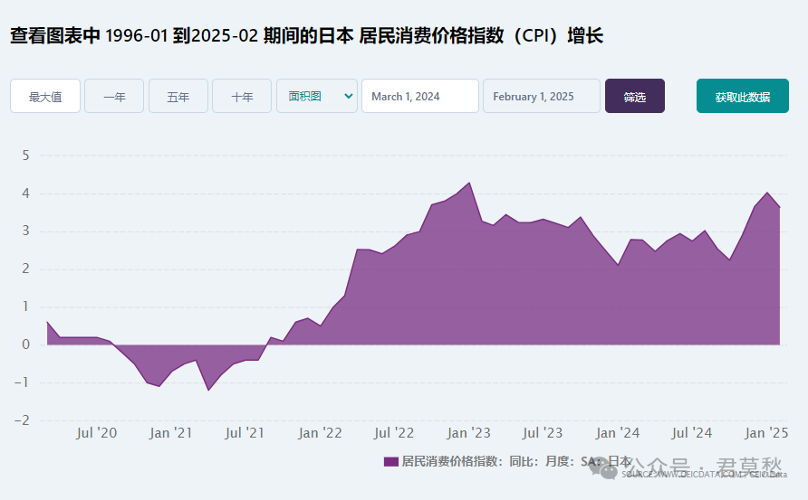 原因很簡單,日本的通脹起來了——日本總務省公佈的數據顯示,日本今年3月消費者價格指數(CPI)同比上漲3.6%。