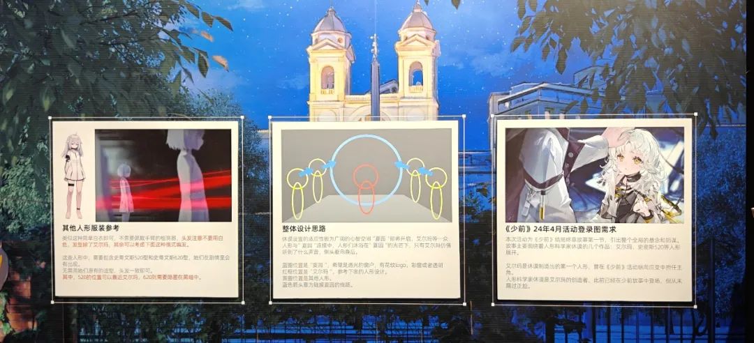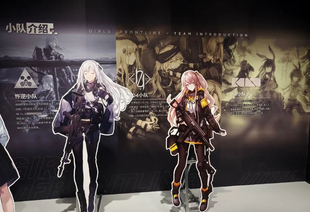例如你在展覽的開頭就能見到關於AR小隊的介紹,但其成員的立牌並不是像其他小隊那樣集中佈置在一處,而是分佈在展區的各個角落——正如遊戲中主線故事的源頭正是從尋找失散的AR小隊開始,其成員的個人命運、團隊羈絆以及與各方勢力的關聯,始終是推動少前世界觀展開的核心線索。從鐵血叛亂到帕拉蒂斯陰謀,AR小隊的故事貫穿了所有重大事件,並持續影響劇情走向。